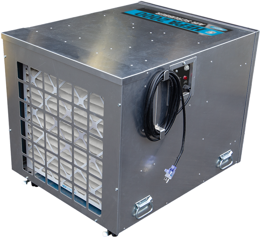Our high-volume, high-efficiency air filtration system, HEPA 2000 Air Scrubber is an optimal performing unit. Featuring two-stage filtration technology, this unit removes extremely fine airborne particles such as dust, mold spores, pollen, pet dander and miscellaneous debris. Suitable for use in homes, light industrial settings, schools, hospitality venues and healthcare environments, the variable airflow and 12-in ductable outlet enable use in containment setups or wherever portable and effective HEPA filtration is needed. Its quieter operation makes it especially useful in large occupied spaces.
